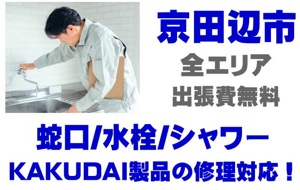 京田辺市で水栓メーカーKAKUDAIの修理業者をお探しなら当社までお気軽にお問い合わせください。蛇口の水漏れ、シャワーの故障などカクダイ製に関するトラブルなら何でもご相談ください。