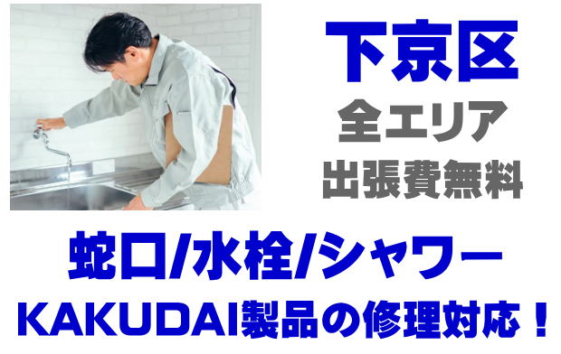 下京区で水栓メーカーKAKUDAIの修理業者をお探しなら当社までお気軽にお問い合わせください。蛇口の水漏れ、シャワーの故障などカクダイ製に関するトラブルなら何でもご相談ください。